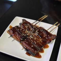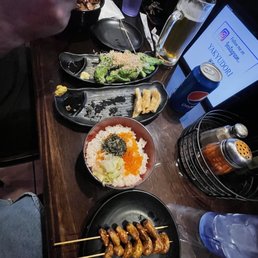 Love this place!! You can never go wrong with the Harami beef, pork belly, chicken thighs, and bacon wrapped asparagus. I usually pair this with the fried rice. The service is very quick and the staff is friendly. If you get a chance to sit at the bar, you can even see them cooking the yakitori in front of you. Everything is fresh and delicious, they never disappoint. 10/10